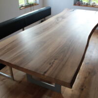 Was schwebt Ihnen vor? Ein aussergewöhnliches Sideboard, ein Esstisch mit passenden Stühlen, ein überdimensionaler Sitzungstisch, ein faszinie- render Salontisch, ein lebend anmutender Schrank oder eine Türe, die aus Ihrem Wunschbaum gefertigt wurde? Formal sind unseren technischen Möglichkeiten kaum Grenzen gesetzt. Möchten Sie ein wildes, urwüchsig strahlendes Charakterstück oder lieber ein puristisches Stilstatement, das mit seiner ausdrucksstarken Krummholz-Ausstrahlung Tag für Tag aufs Neue begeistert? So oder so bestimmen Sie auf Wunsch das Design und natürlich auch den Baum, der Ihr Herz berührt. Mittels Gravur der Koordi- naten seines Standortes bleibt er mit seinem ursprünglichen Platz für im- mer verbunden.