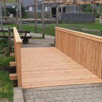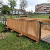 Im Frühjahr ist die letzte von insgesamt 4 Brücken ersetzt worden. Die Brücke ist komplett aus Lärche in unserer Werkstatt in Arnegg vorgefertigt worden. Am 17.April 2020 konnte sie Mithilfe eines Raupenkrans innerhalb kurzer Zeit millimetergenau versetzt und montiert werden.