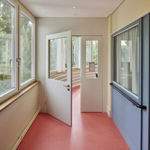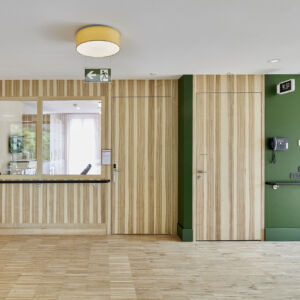 Die Koster AG Holzwelten war am Umbau beteiligt, realisierte Schreinerarbeiten und verbaute insgesamt 290 Brandschutzelemente im Alt- und Neubau.