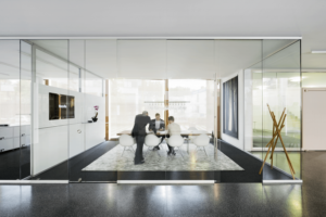 Trennwände sind Wand-, Glas- und Türelement in einem und bieten unzählige Gestaltungsvarianten. Sollten sich die Raumbedürfnisse im Laufe der Zeit ändern, lassen sie sich ohne grossen Aufwand und lange Arbeitsunterbrechungen versetzen.